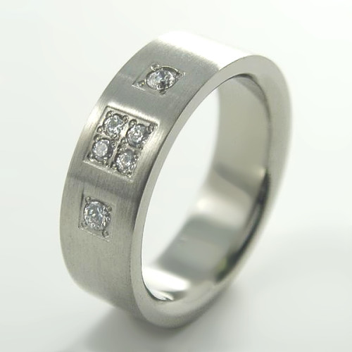 Prsten vyrobený z matné chirurgické oceli se vsazenými ka..